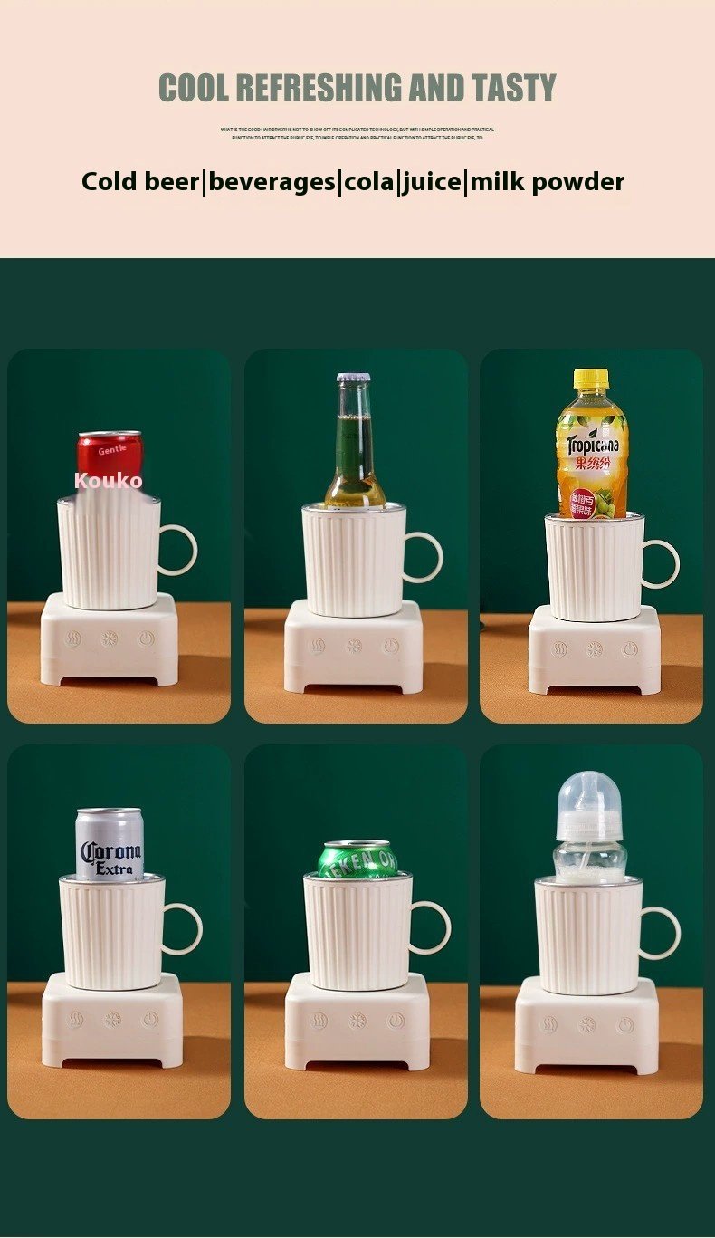 Keep Beverages Cool: The desktop cup cooler can instantly change beverages from room temperature to ice cold faster than putting them in the refrigerator, is suitable for most beverage bottles.